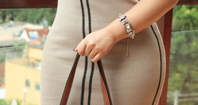 Me apaixonei pelo vestido assim que o vi no Ateliê Anja aqui no Rio. Ele é de linho e bem justinho no corpo. A cor é um nude lindo e super chic. As listras por todo o vestido deixa o corpo contornado e no formato violão que eu amo! Apesar de ter amado de cara esse modelo, no Ateliê há tantos outros encantadores que eu amaria ter um desfile por semana só para usar um por um haha.